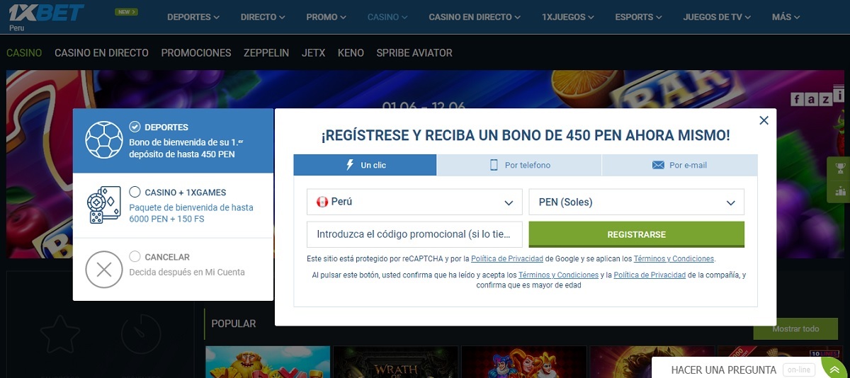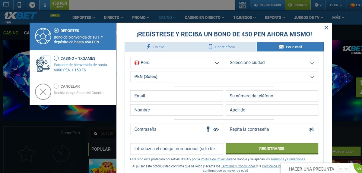 Este operador te da la oportunidad de hacer un registro rápido en un clic, o a través de tu email o por teléfono. En cualquier caso, tendrás el campo para ingresar tu codigo promocional 1xbet y activar tu cuenta.